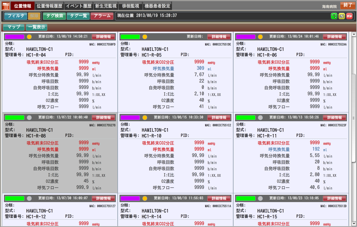 【Open Library VPS (Visual Positioning System )は弊社SerialTAG を使用することでアラームを含む機器の運転状態情報を直接採取し、表示することができます。アラームの採取は患者安全に寄与し、運転状態の簡易モニタリングでは、機器の状態変化を連続的に記録。再生も可能です。